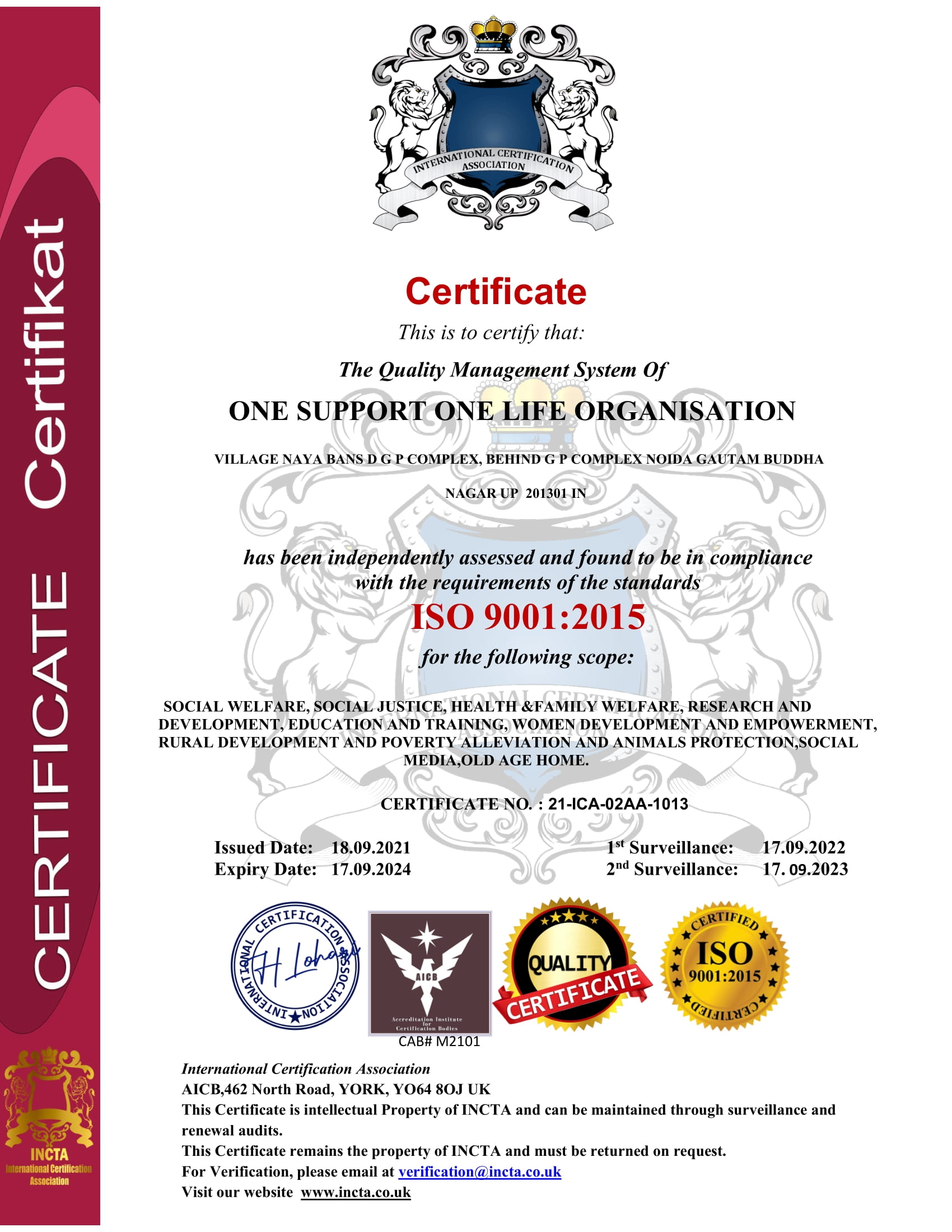 *All Donations To One Support One Life Organisation Are Tax Exempted Under Section 80 G(5)(vi) of Income Tax Act 1961.*
